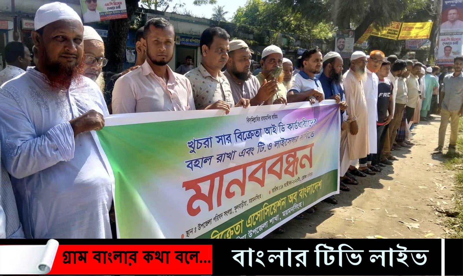 ফুলবাড়ীয়ায় খুচরা সার বিক্রেতাদের বহাল রাখার দাবিতে মানববন্ধন