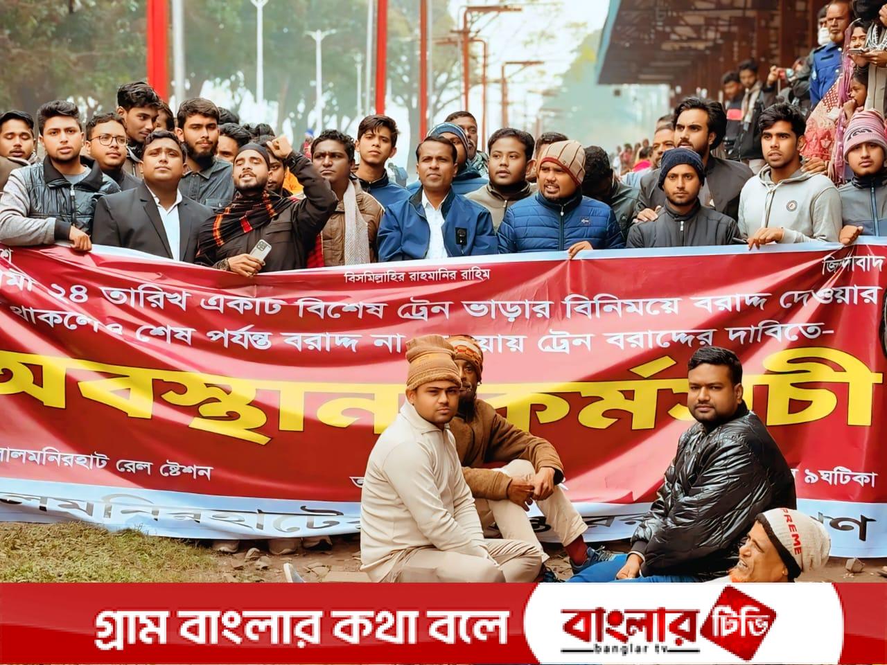 বিশেষ ট্রেনের দাবিতে লালমনিরহাটে রেলপথ অবরোধ, ট্রেন যোগাযোগ বিচ্ছিন্ন