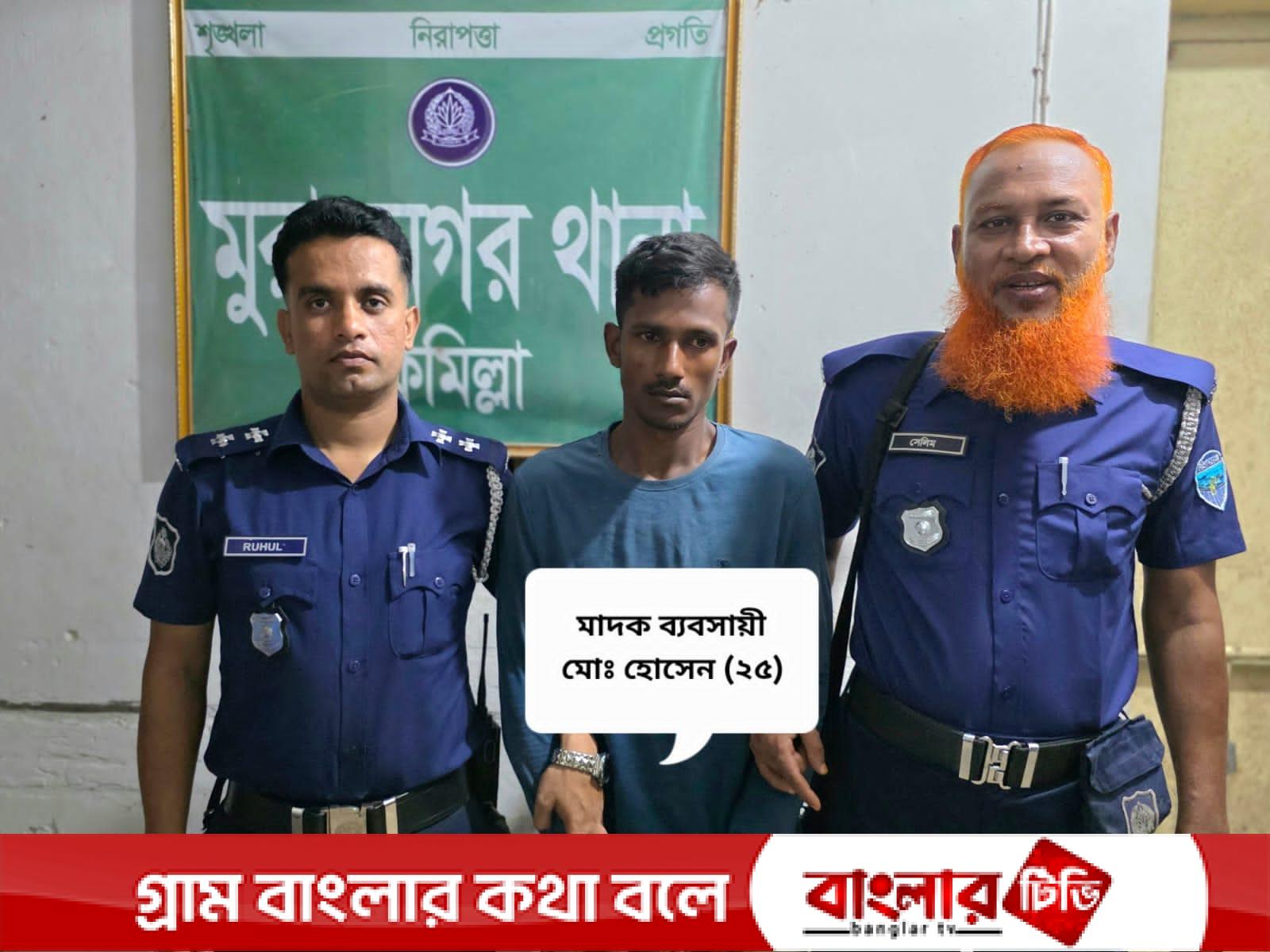 মুরাদনগর থানার ভারপ্রাপ্ত কর্মকর্তা (ওসি) মো. মাসরুরুল হক জানান, মাদকবিরোধী অভিযানে ইয়াবাসহ মো. হোসেনকে গ্রেপ্তার করা হয়েছে। তার বিরুদ্ধে মাদকদ্রব্য নিয়ন্ত্রণ আইনে মামলা দায়ের করা হয়েছে এবং শুক্রবার তাকে আদালতে প্রেরণ করা হবে।