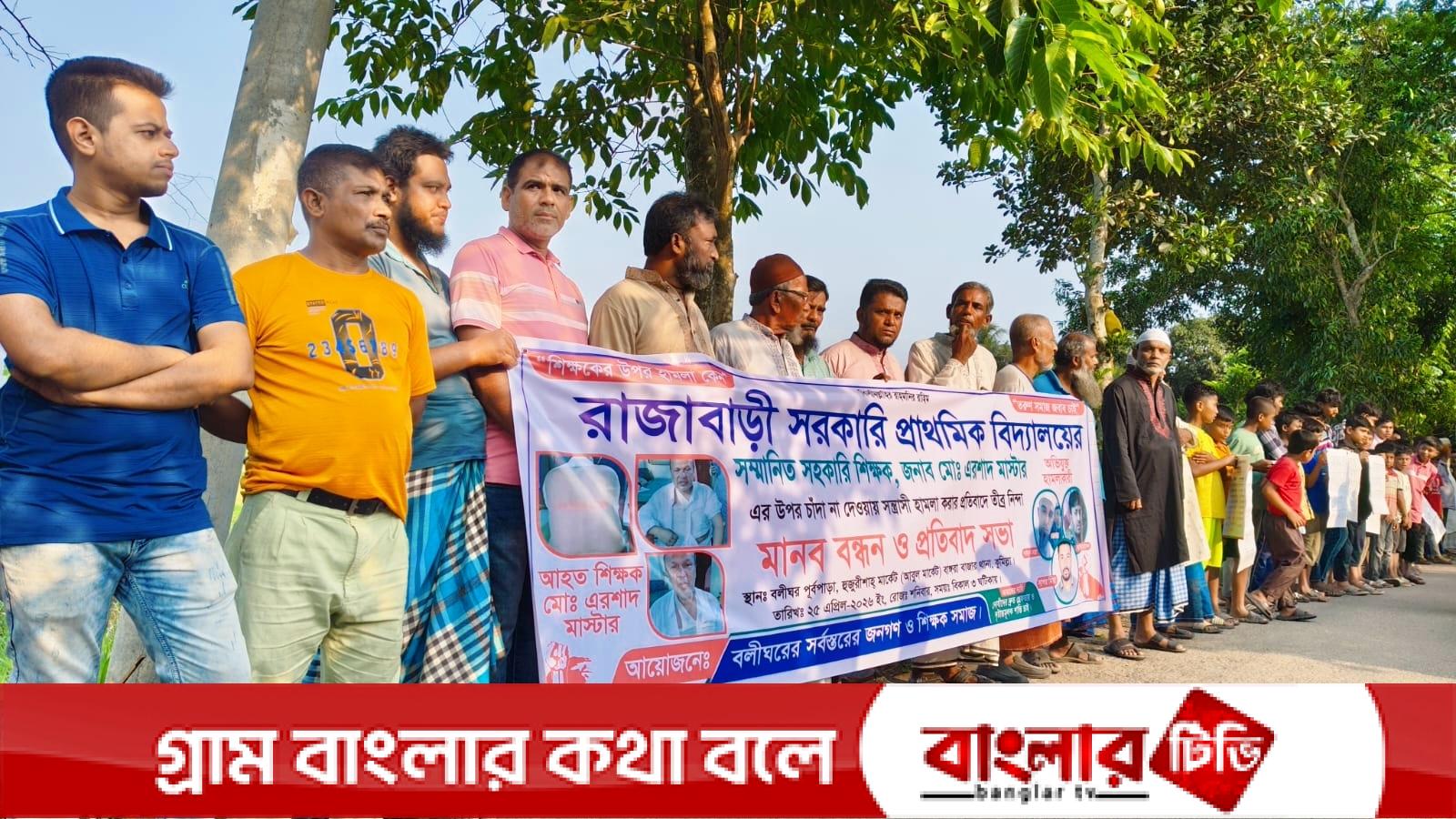 মুরাদনগরে শিক্ষকের উপর হামলার প্রতিবাদে মানববন্ধন ও বিক্ষোভ সমাবেশ