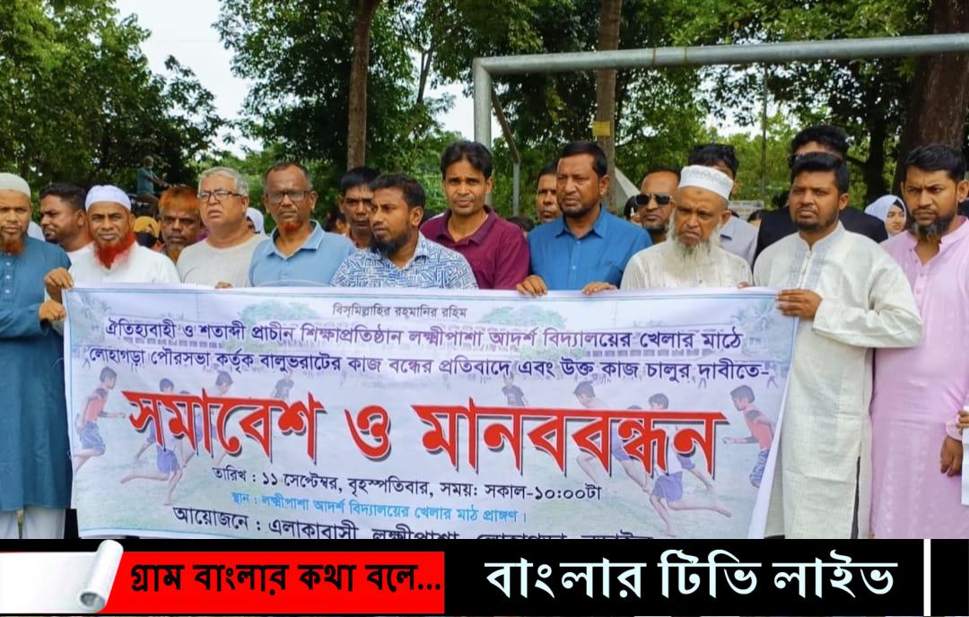 নড়াইলের লোহাগড়ার ঐতিহ্যবাহী শিক্ষা প্রতিষ্ঠান লক্ষ্মীপাশা আদর্শ বিদ্যালয়ের খেলার মাঠে বালু ভরাটের কাজ বন্ধের প্রতিবাদে এবং উক্ত কাজ পুনরায় চালুর দাবিতে সমাবেশ ও মানববন্ধন অনুষ্ঠিত হয়েছে।