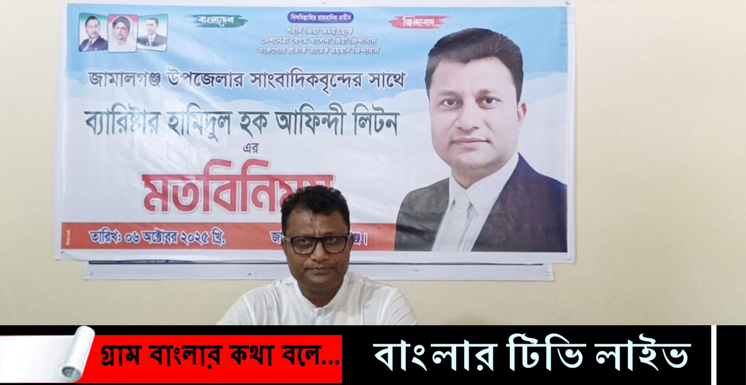 সুনামগঞ্জ-১ (তাহিরপুর, জামালগঞ্জ, ধর্মপাশা ও মধ্যনগর) আসনে বিএনপির মনোনয়ন প্রত্যাশী যুক্তরাজ্যপ্রবাসী ব্যারিস্টার হামিদুল হক আফিন্দী লিটন বলেছেন,