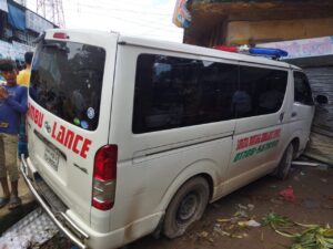একটি অ্যাম্বুলেন্স বাখরাবাদ বাজারে এসে বামে মোড় নেওয়ার সময় নিয়ন্ত্রণ
