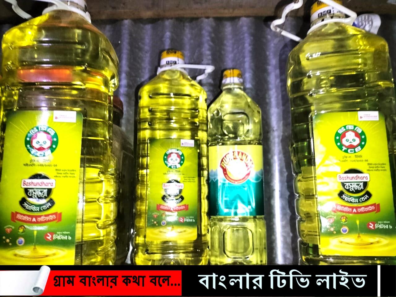 সরেজমিনে দেখা যায়, গতকাল ৫নং পূর্ব দৈর পশ্চিম ইউনিয়নের ৬নং ওয়ার্ডে মহেশপুর গ্রামের ভান্ডারী মার্কেটের দুলাল মিয়ার দোকানে গিয়ে দেখা যায়, তিনি দোকানের থাকে থরে থরে সাজিয়ে রেখেছেন তেলের বোতল। যে গুলোর গায়ে টিসিবির স্টিকার সাঁঠানো। প্রতি বোতলের মূল্য ৪০০ টাকা দরে সাধারণ ক্রেতার কাছে বিক্রি করছেন তিনি। ছবি তোলার বিষয়টি আচ করতে পেরে তিনি অন্য পণ্য গুলো সড়িয়ে নেয়।