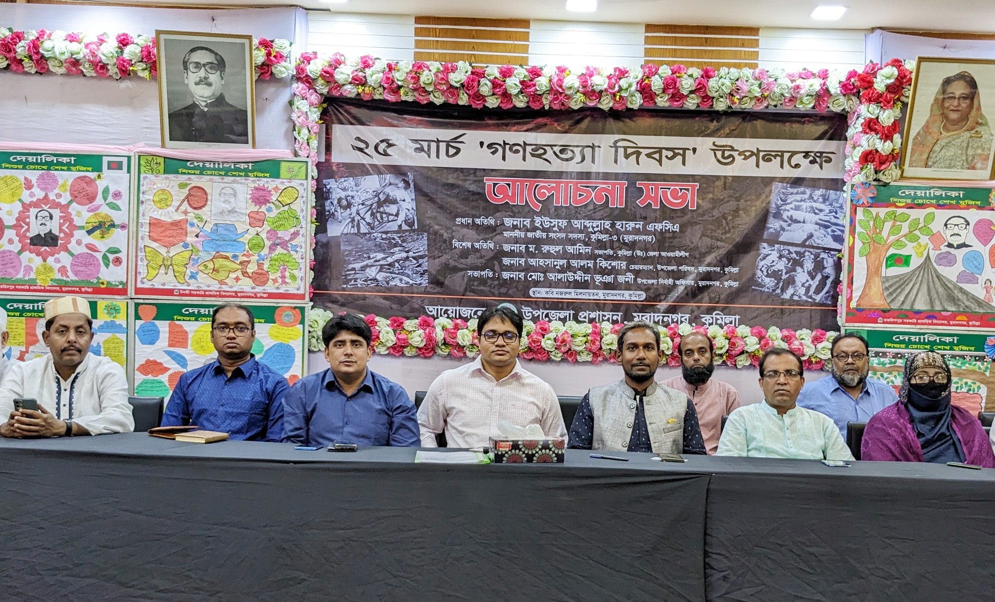 মুরাদনগর (কুমিল্লা) প্রতিনিধিঃ কুমিল্লার মুরাদনগর উপজেলায় ঐতিহাসিক ২৫শে মার্চ জাতীয় ‘গণহত্যা দিবস’ পালিত হয়েছে। শনিবার বেলা ১১টায় উপজেলা কবি নজরুল মিলনায়তনে গণহত্যা দিবস উপলক্ষে আলোচনা সভার আয়োজন করে উপজেলা প্রশাসন।