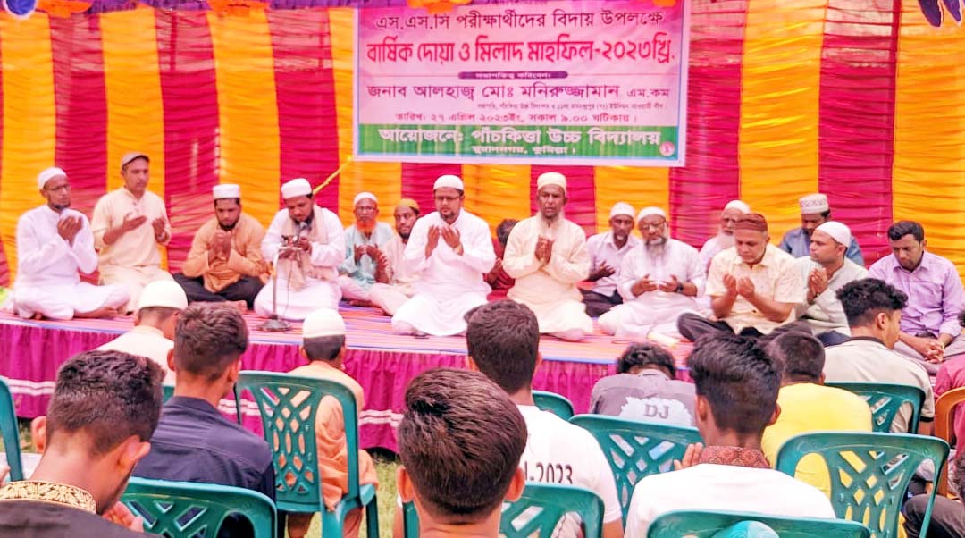 মুরাদনগর (কুমিল্লা) প্রতিনিধিঃ এসএসসি পরীক্ষা ২০২৩ এর বিদায় উপলক্ষে কুমিল্লার মুরাদনগর উপজেলার ঐতিহ্যবাহী পাঁচকিত্তা উচ্চ বিদ্যালয়ের বার্ষিক মিলাদ ও দোয়া মাহফিল অনুষ্ঠিত হয়েছে। বৃহস্পতিবার সকাল ১০ টায় বিদ্যালয় মাঠে জাকজমকপূর্ণ