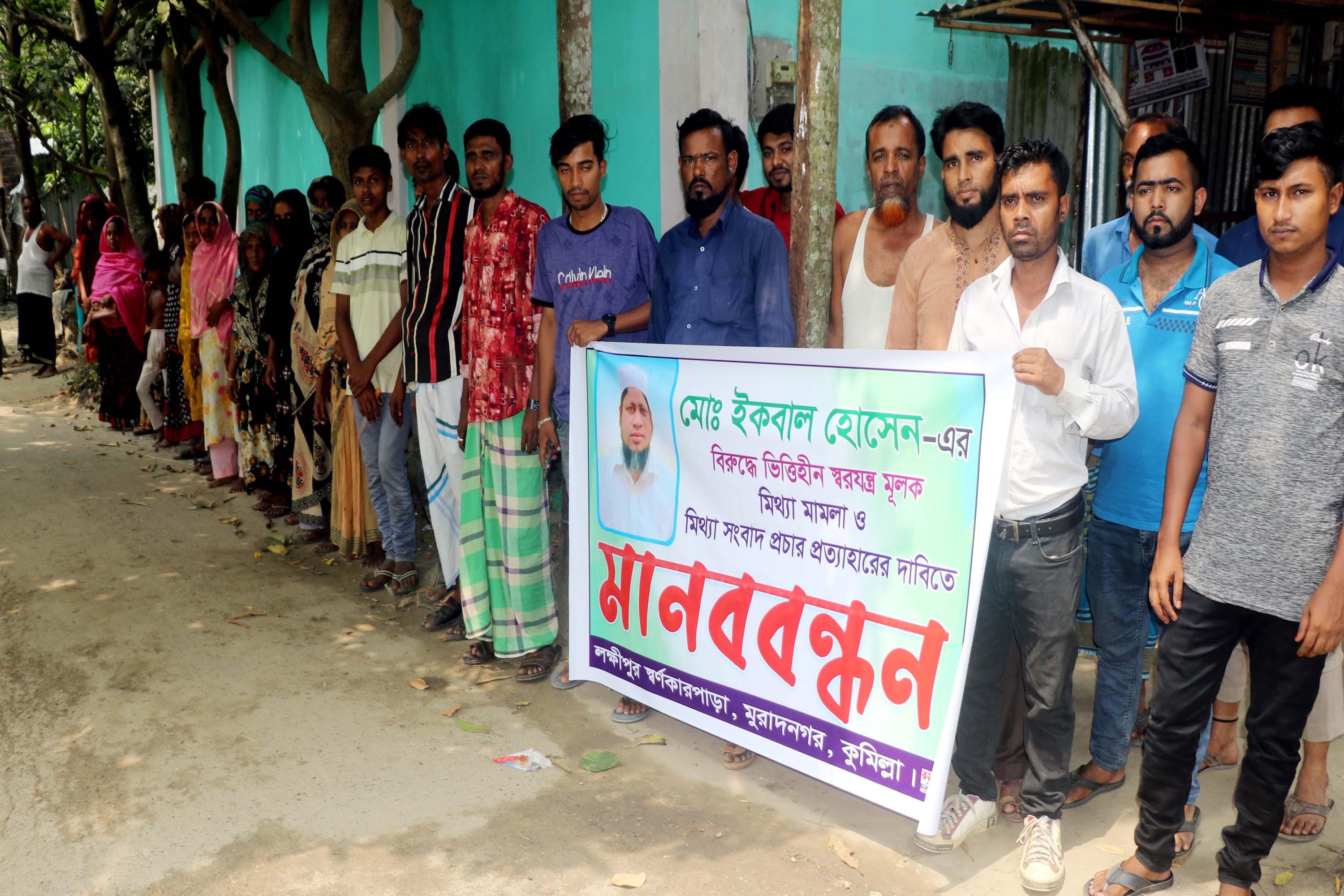 মুরাদনগর (কুমিল্লা) প্রতিনিধি: কুমিল্লার মুরাদনগরে এক ব্যবসায়ীর বিরুদ্ধে অপপ্রচার ও মিথ্যা মামলা দিয়ে হয়রানির প্রতিবাদে মানববন্ধন ও বিক্ষোভ সমাবেশ করেছে এলাকাবাসী। মঙ্গলবার বিকেলে উপজেলার ধামঘর ইউনিয়নের লক্ষ্মীপুর গ্রামের লক্ষ্মীপুর- কৃষ্ণপুর
