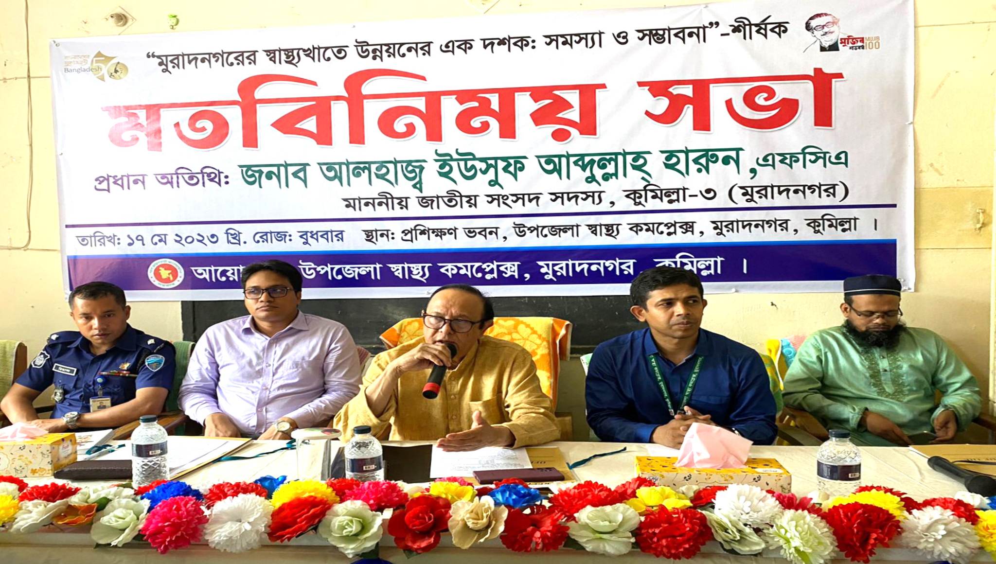 মুরাদনগর, কুমিল্লা, প্রতিনিধিঃ কুমিল্লা মুরাদনগরে উপজেলা স্বাস্থ্য কমপ্লেক্সের আয়োজনে “স্বাস্থ্যখাতে উন্নয়নের এক দশক পূর্তি উপলক্ষে সমস্যা ও সম্ভাবনা” শীর্ষক এক মতবিনিময় সভা অনুষ্ঠিত হয়েছে। বুধবার বিকালে উপজেলা স্বাস্থ্য কমপ্লেক্সের প্রশিক্ষণ