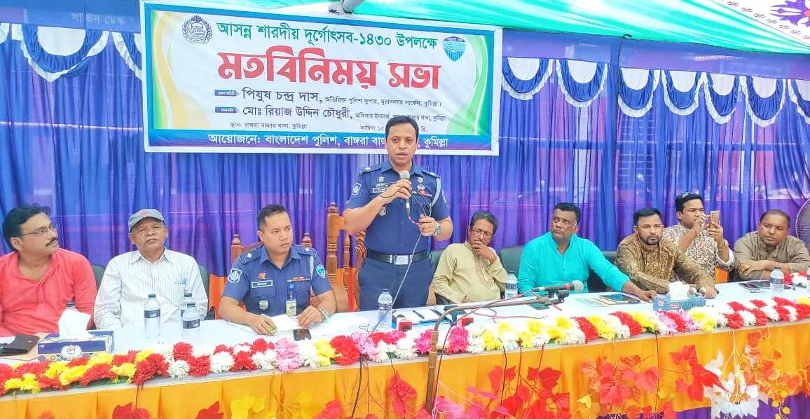 মুরাদনগর (কুমিল্লা) প্রতিনিধিঃ আসন্ন শারদীয় দুর্গাপূজা উদযাপন উপলক্ষে কুমিল্লার মুরাদনগর উপজেলার বাঙ্গরা বাজার থানায় জনপ্রতিনিধি ও পূজা উদযাপন কমিটির সাথে মতবিনিময় সভা অনুষ্ঠিত হয়েছে। রবিবার বেলা ১২ টায় বাঙ্গরা বাজার