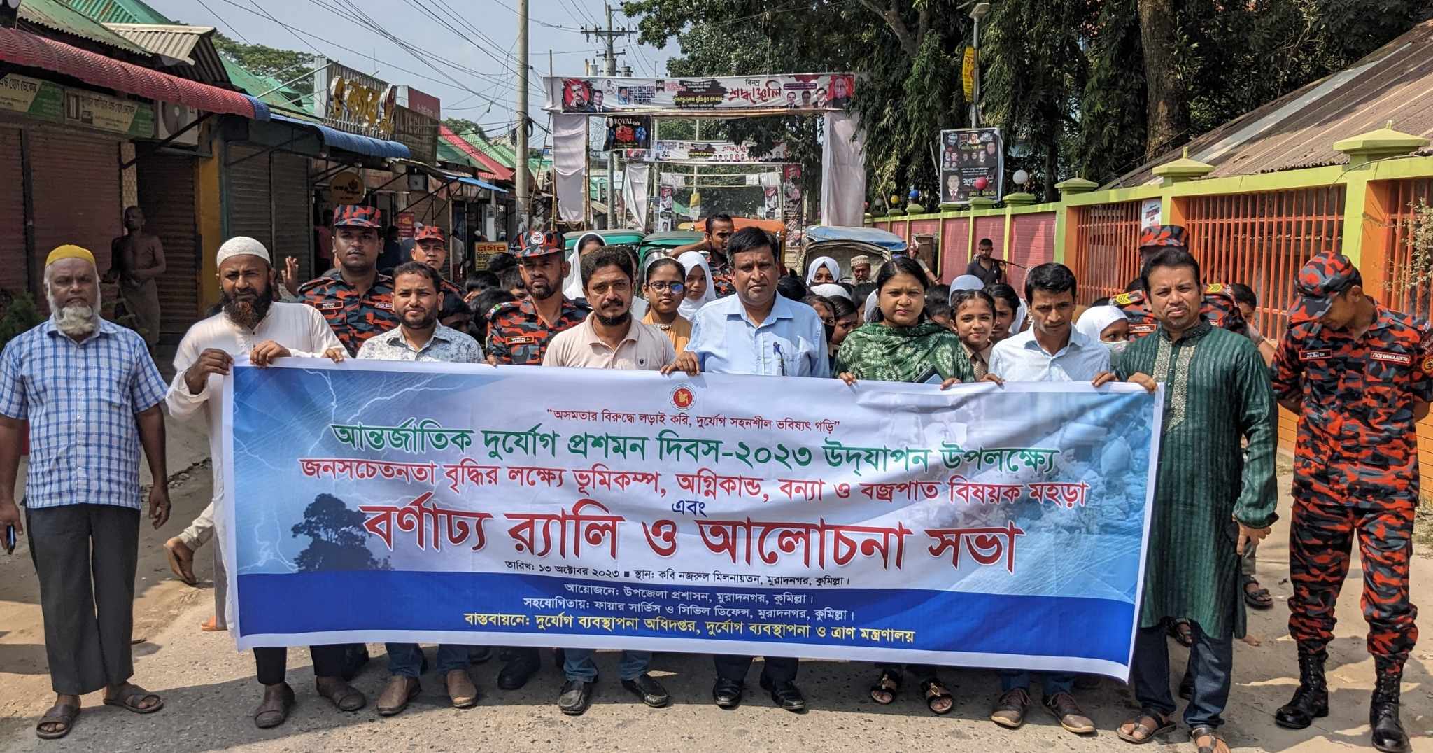 মুরাদনগর (কুমিল্লা) প্রতিনিধিঃ ‘অসমতার বিরুদ্ধে লড়াই করি, দুর্যোগ সহনশীল ভবিষ্যৎ গড়ি’ এই প্রতিপাদ্যকে সামনে রেখে কুমিল্লার মুরাদনগরে আন্তর্জাতিক দুর্যোগ প্রশমন দিবস উদযাপন উপলক্ষে র্যালী ও আলোচনা সভা অনুষ্ঠিত হয়েছে। উপজেলা