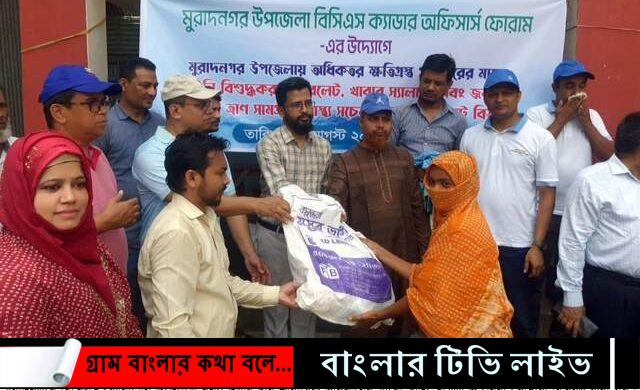 মো. রাসেল মিয়া, মুরাদনগর (কুমিল্লা)।। কুমিল্লা জেলার মুরাদনগর উপজেলা বিসিএস ক্যাডার অফিসার্স ফোরামের উদ্যোগে বন্যা দূর্গত চার শতাধিক পরিবারের মাঝে খাদ্য সামগ্রী ও শিশুদের মাঝে তৈরী পোষাক বিতরণ করা হয়েছে।