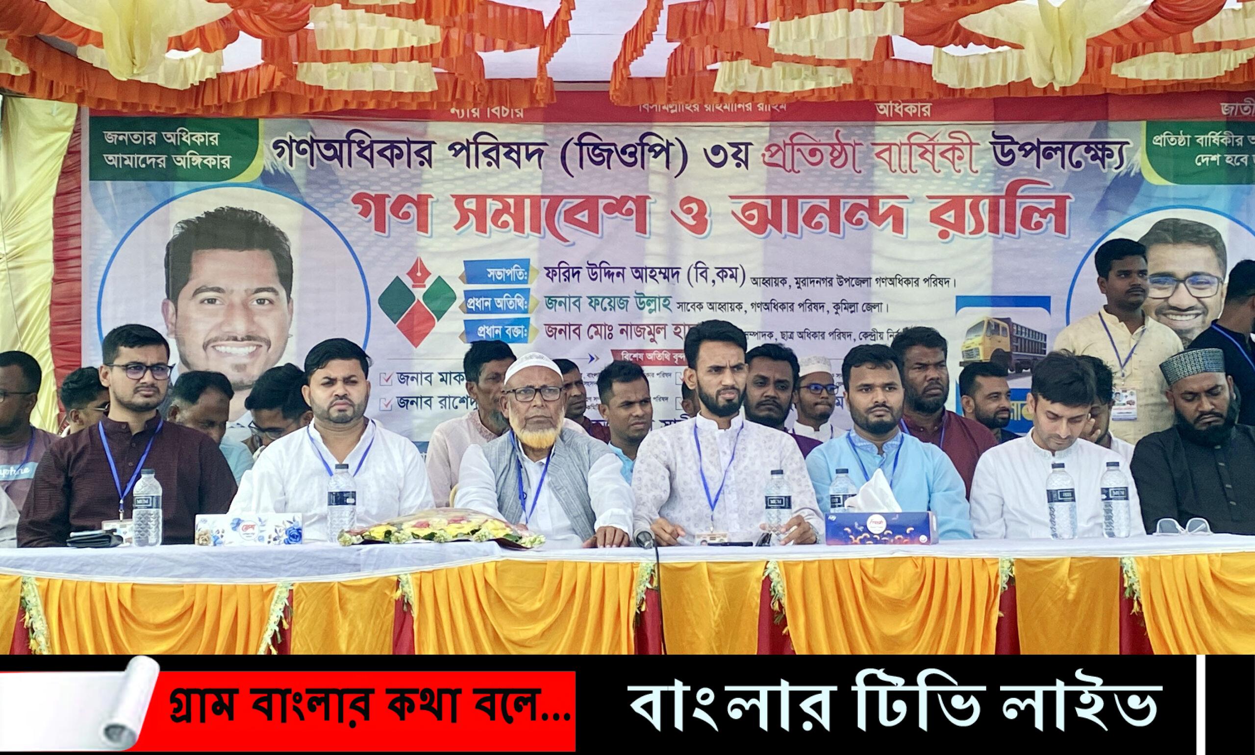 "জনতার অধিকার, আমাদের অঙ্গীকার" এই ¯স্লোগান নিয়ে সদ্য নিবন্ধন পাওয়া রাজনৈতিক দল বাংলাদেশ গণঅধিকার পরিষদের তৃতীয় প্রতিষ্ঠা বার্ষিকী পালন করা হয়েছে। এ উপলক্ষে গণসমাবেশ ও কেক কেটে প্রতিষ্ঠা বার্ষিকী পালন করেছে গণঅধিকার পরিষদ কুমিল্লার জেলার মুরাদনগর উপজেলা শাখা।