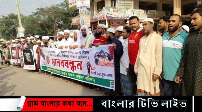 মুরাদনগর (কুমিল্লা) প্রতিনিধি : জাতীয় পতাকা অবমাননা, মসজিদ ভাঙচুর, চট্রগ্রামের আইনজীবী সাইফুল ইসলাম আলিফের হত্যার বিচার ও হিন্দু সংগঠন ইসকনের সব কার্যক্রম নিষিদ্ধ করার দাবিতে মানববন্ধন ও বিক্ষোভ মিছিল করে