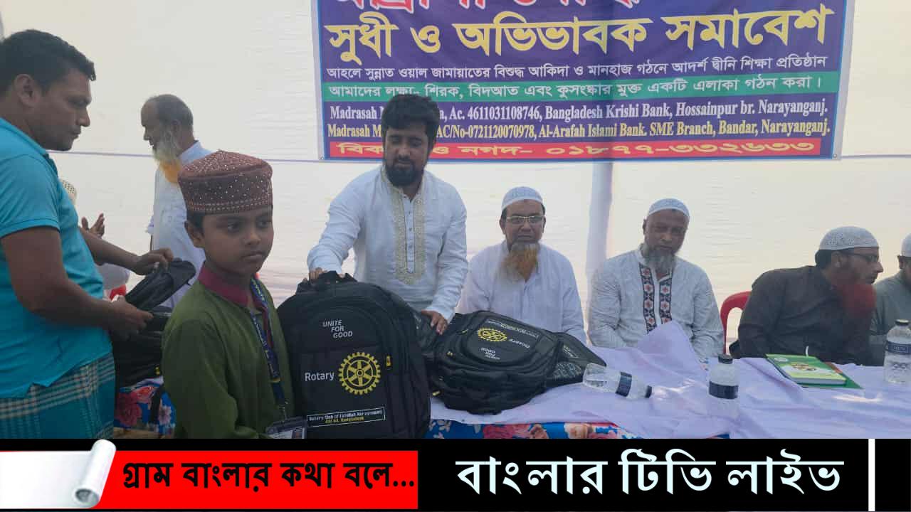 সোনারগাঁয়ের শম্ভুপুরা ইউনিয়ন মোহাম্মদীয়া মাদ্রাসায় শিক্ষার্থীদের মাঝে স্কুল ব্যাগ, খাতা, কলম, পেন্সিলসহ বিভিন্ন শিক্ষা উপকরণ বিতরণ করা হয়েছে।