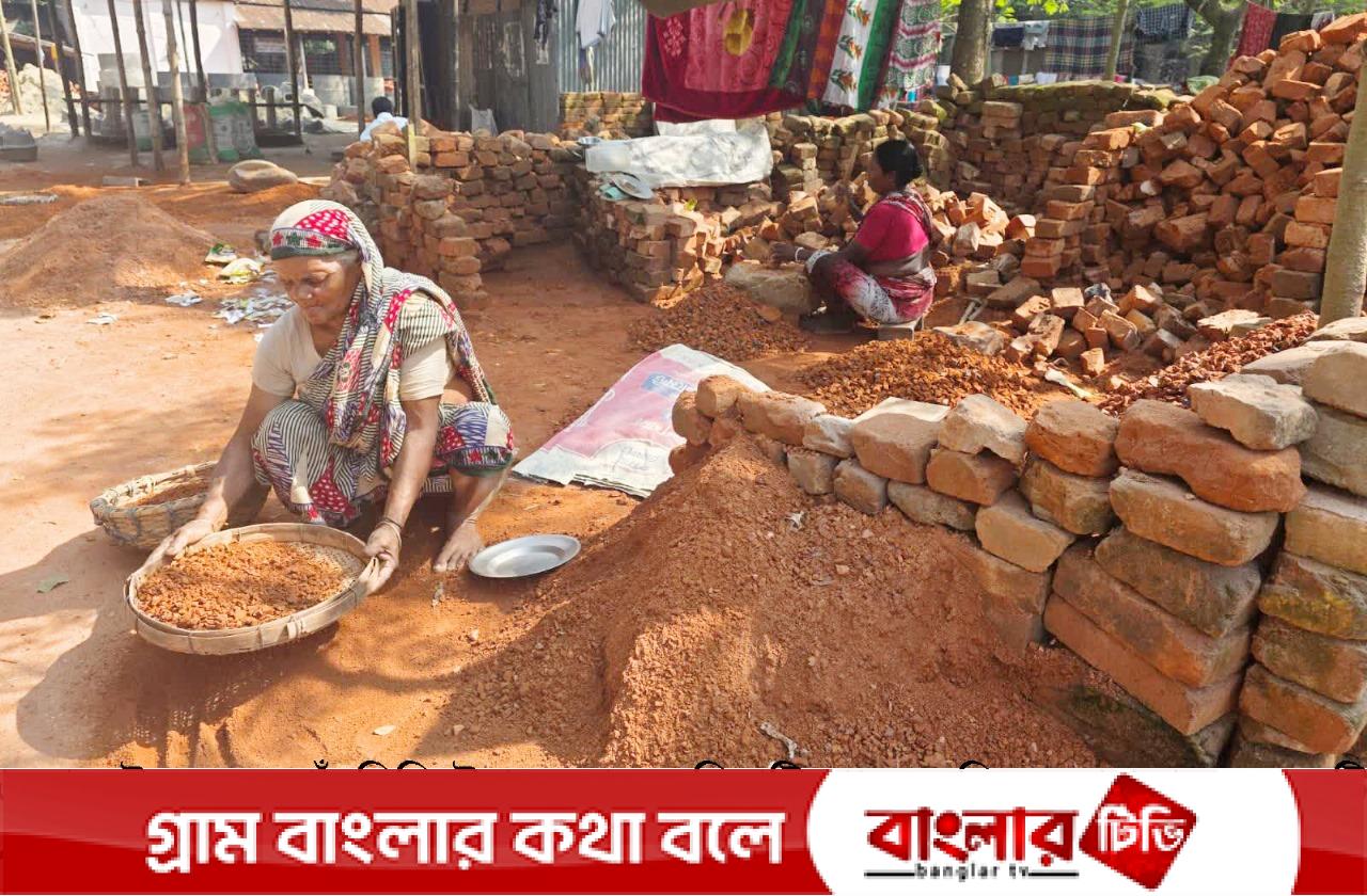 পাঁচবিবির ৭০ পরিবারের জীবন চলে ইটের খোয়া ভেঙ্গে