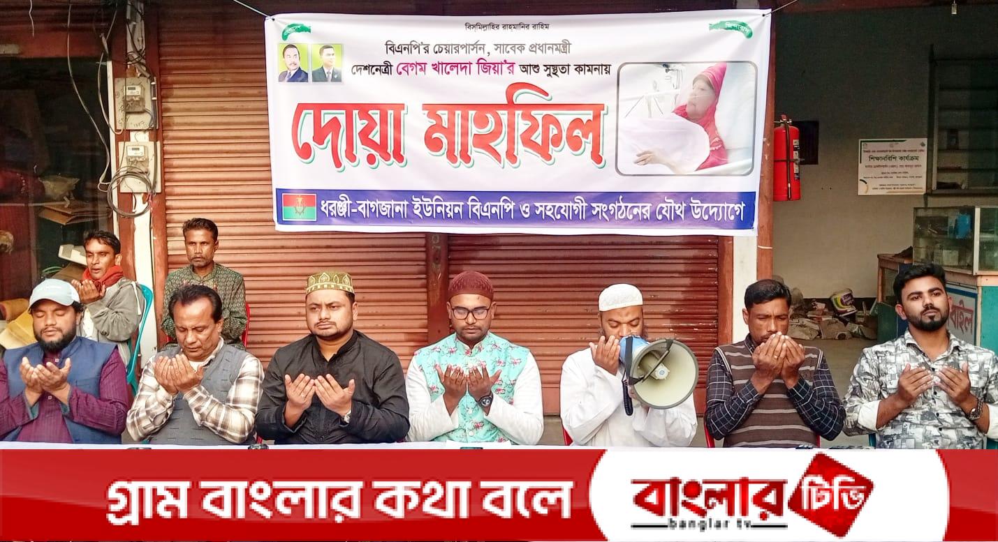 বাগজানা বাসস্ট্যান্ড মনির উদ্দিন সুপার মার্কেটের সামনে দলের শীর্ষ নেতা খালেদা জিয়ার শারীরিক সুস্থতা কামনায় এ দোয়া মাহফিলের আয়োজন করা হয় ।