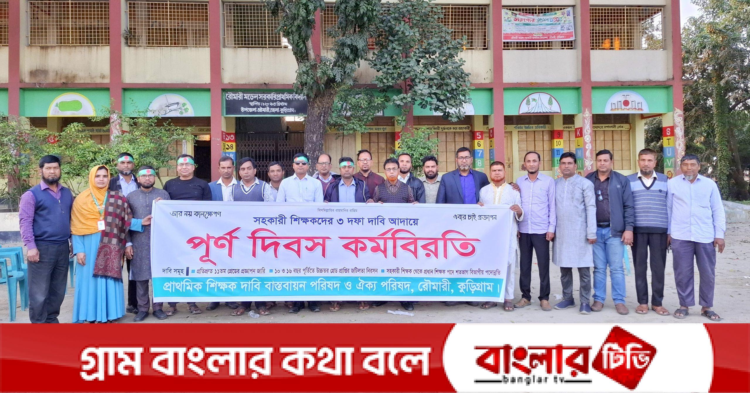 সহকারী শিক্ষকদের ৩ দফা দাবিতে রৌমারীতে পূর্ণদিবস কর্মবিরতি পালন