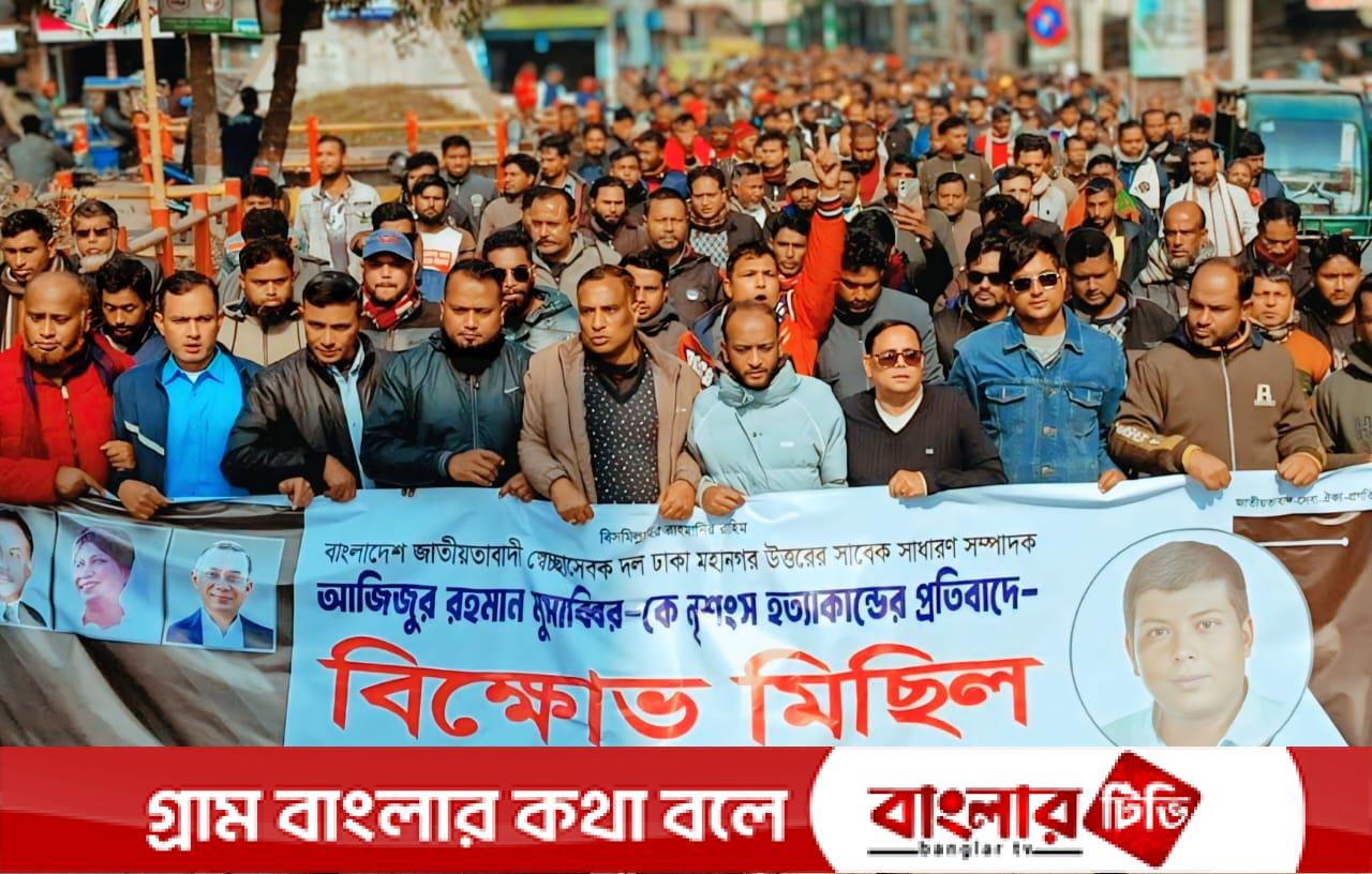 আজিজুর রহমান মুছাব্বির হত্যার প্রতিবাদে লালমনিরহাটে স্বেচ্ছাসেবকদলের বিক্ষোভ