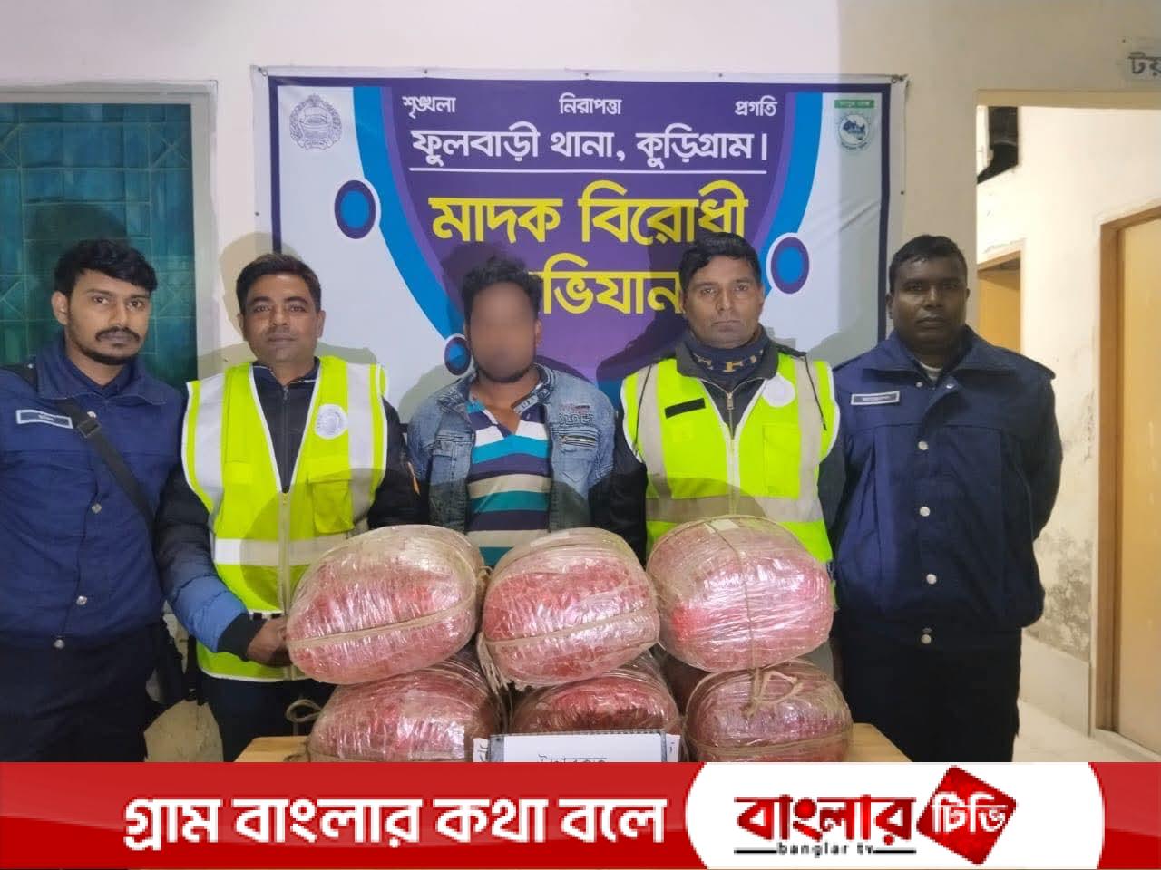 কুড়িগ্রাম ফুলবাড়ীতে মাদকবিরোধী অভিযানে ৩২ কেজি গাঁজাসহ ০১ জন মাদক কারবারি আটক