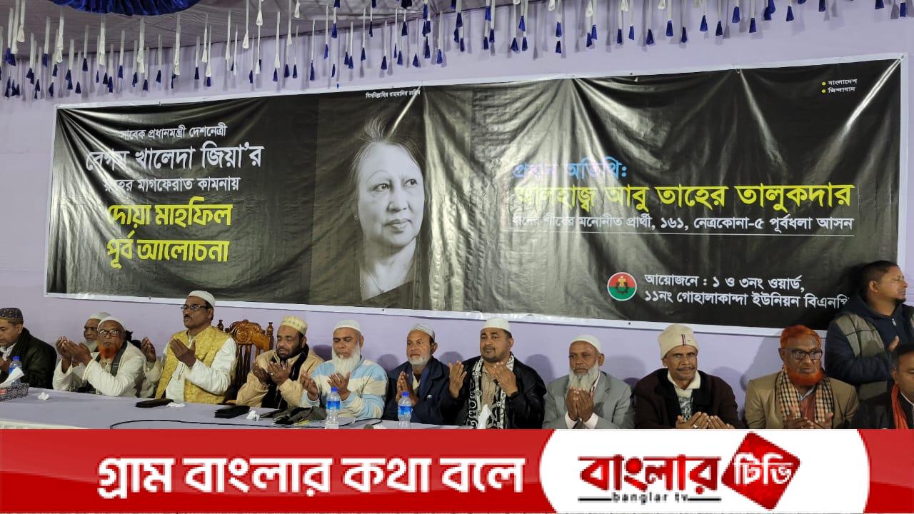 পূর্বধলায় বেগম খালেদা জিয়ার রুহের মাগফেরাত কামনায় দোয়া মাহফিল