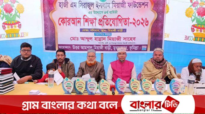নিজস্ব প্রতিনিধি।। উৎসবমুখর পরিবেশে ৪র্থ বারের মতো কুমিল্লার মুরাদনগরে কোরআন শিক্ষা প্রতিযোগিতা অনুষ্ঠিত হয়েছে ২০২৬। শনিবার (৩ জানুয়ারি) মুরাদনগর উপজেলার উত্তর আমপাল মিয়াজী বাড়ীতে হাজী এম সিরাজুল ইসলাম মিয়াজী read more