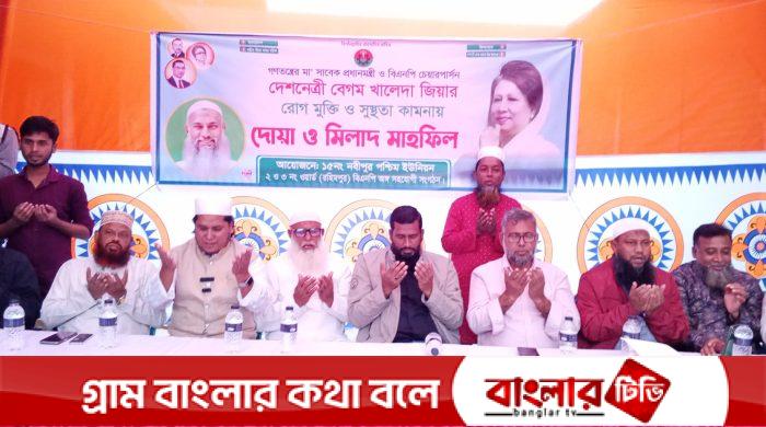 নিজস্ব প্রতিনিধি।। বাংলাদেশ জাতীয়তাবাদী দল বিএনপির চেয়ারপার্সন ও সাবেক প্রধানমন্ত্রী বেগম খালেদা জিয়ার রোগ মুক্তি ও সুস্থতা কামনায় দোয়া মাহফিল করেছে মুরাদনগর উপজেলার রহিমপুর ২,৩নং ওয়ার্ড বিএনপি। বৃহস্পতিবার বিকেলে