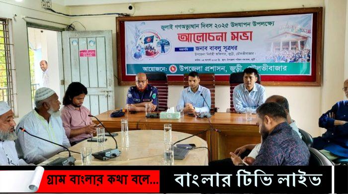 জসিম উদ্দিন,জুড়ী মৌলভীবাজার,প্রতিনিধি।। মৌলভীবাজার জেলার জুড়ীতে জুলাই গণ-অভ্যুত্থান দিবস উপলক্ষে আলোচনা সভা অনুষ্ঠিত হয়েছে। মঙ্গলবার (৫ আগস্ট) উপজেলা সভাকক্ষে উপজেলা প্রশাসনের আয়োজনে জুলাই দিবস উদযাপন অনুষ্ঠানে সভাপতিত্ব করেন উপজেলা নির্বাহী